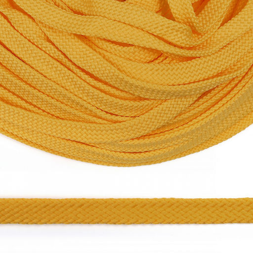Шнур плоский полиэфир 12 мм турецкое плетение цв.016 желтый уп.50 м