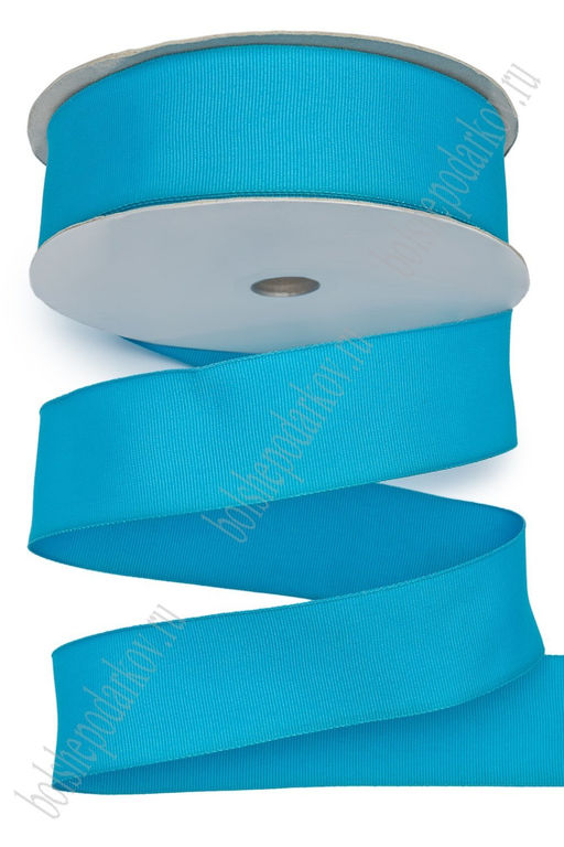 Лента репсовая, голубая, 3,8 см*35 ярд (с проволокой по краям) 38-009