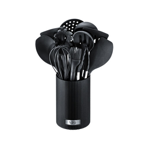 LR07-81 Набор кухонных принадлежностей (черный) 12 предметов с круглой подставкой /LARA/
