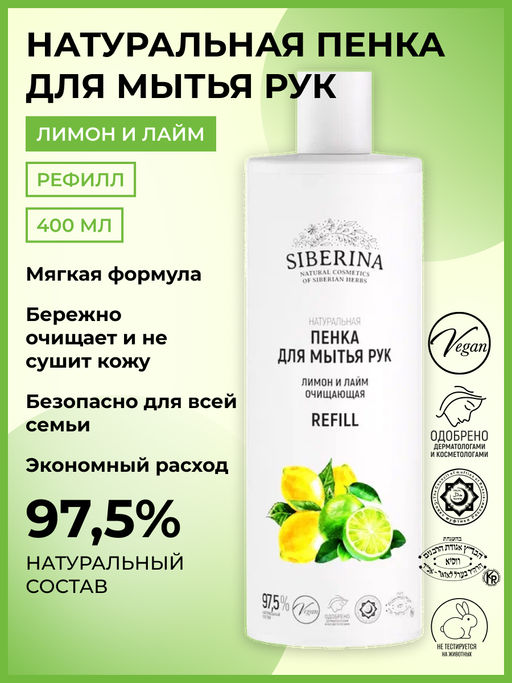 Натуральная пенка для мытья рук очищающая "Лимон и лайм"