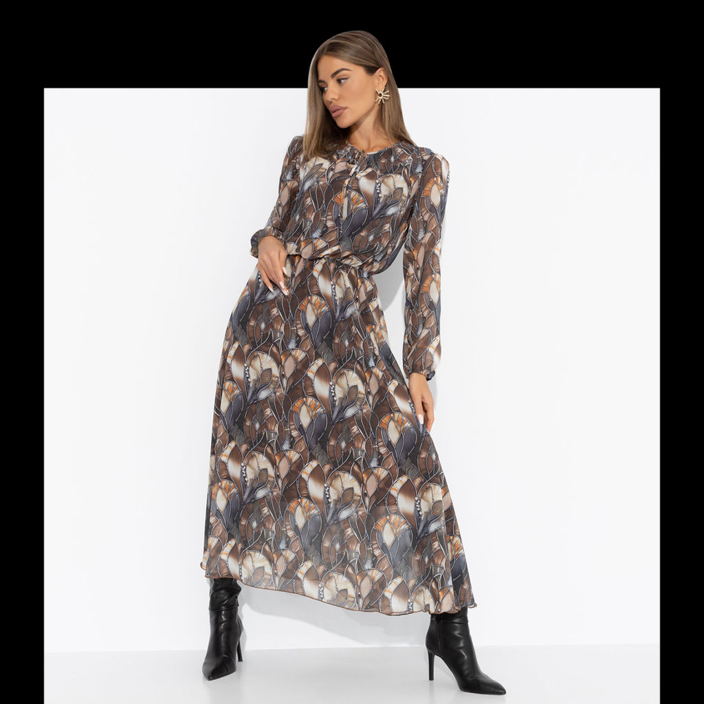 Платье нарядное на подкладе, Летящие мгновения (brown)