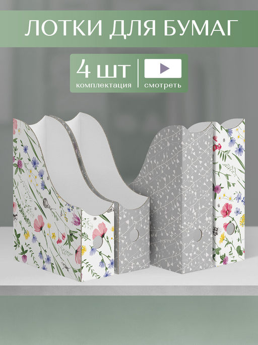 VAL HC-2VP-85mix Лоток для бумаг верт. 29.5*23.5*8.5см, набор 4шт., 2 цвета, HERBARIUM CLOVER, шт