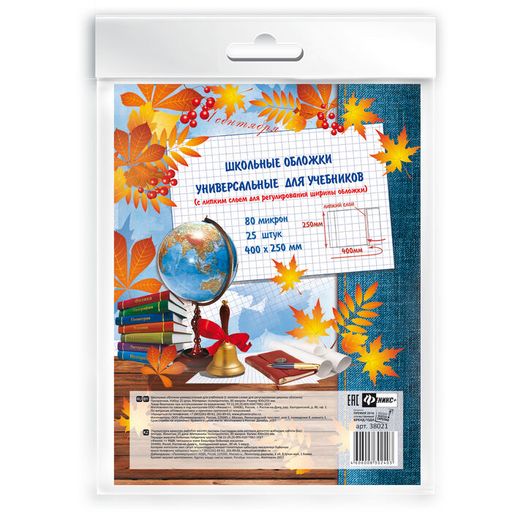 Обложки универс. с липким слоем (25 шт), д/шк. учебн. арт. 38021/П/(400x250мм)