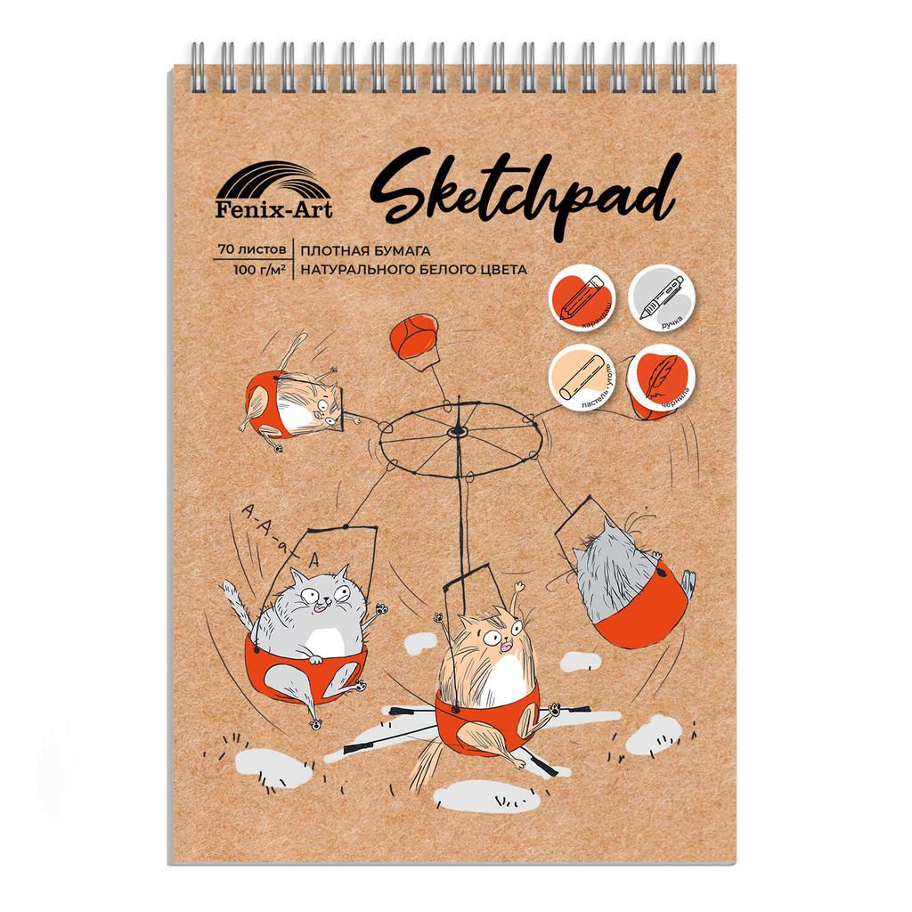 Скетчпад А5 148х195 мм, 70 л, блок - белый офсет 100 г/м?, арт. 60670 КОТО-КАРУСЕЛЬ