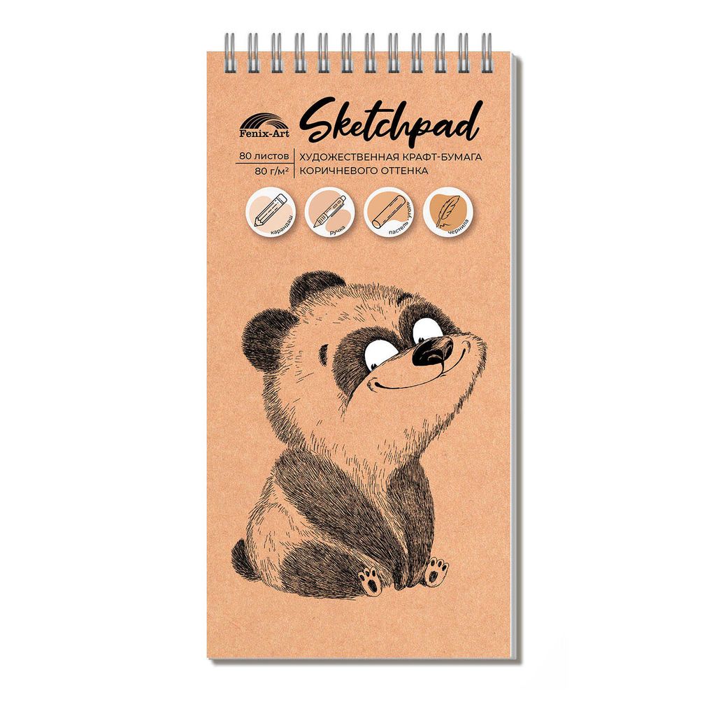 Скетчпад 105х210 мм, 80 л, блок - крафт-бумага 80 г/м?, арт. 60582 МИШКА