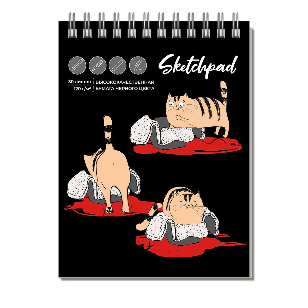 Скетчпад 98х128 мм, 30 л, блок - чёрный офсет 120 г/м?, арт. 62443 КОТ-НЕПОСЕДА