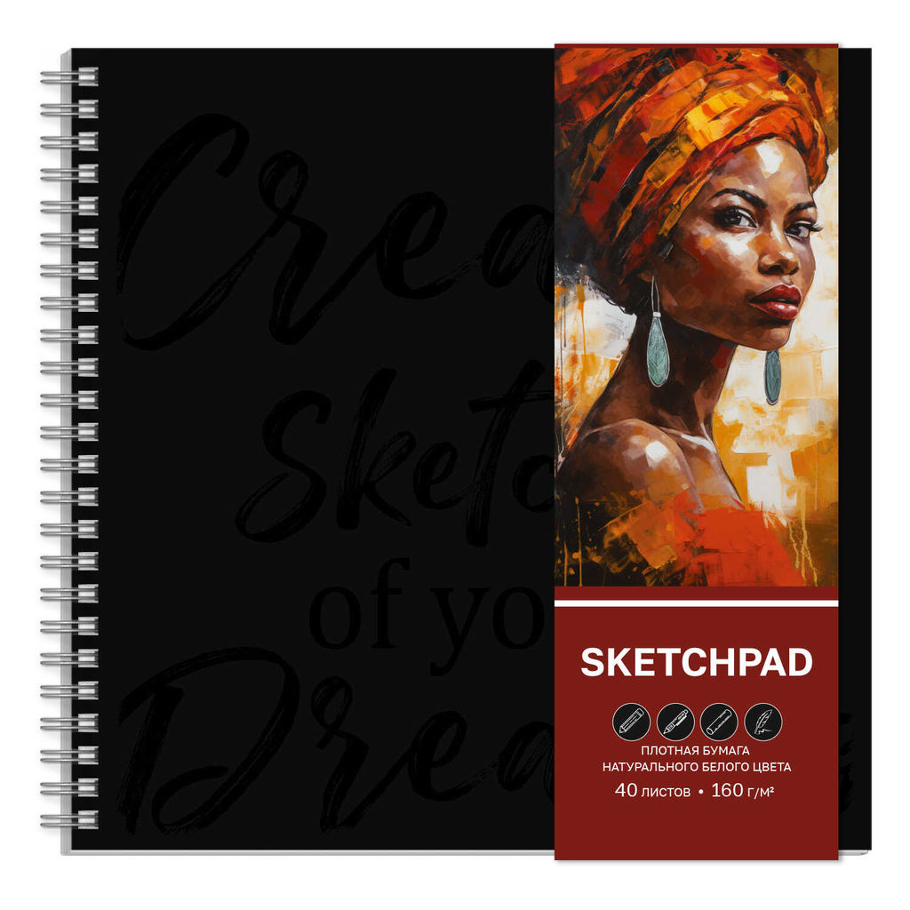 Альбом для рисования (Скетчпад) 210х210 мм, 40 л, блок - белый офсет 160 г/м?, арт. 65414 ДЕВУШКА