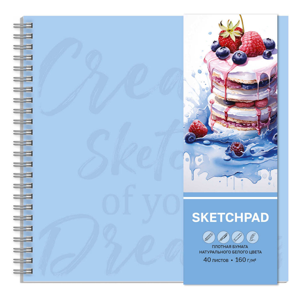 Альбом для рисования (Скетчпад) 210х210 мм, 40 л, блок - белый офсет 160 г/м?, арт. 65412 ДЕСЕРТ