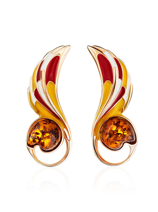 Красивые яркие серьги с эмалью и натуральным янтарём Суздаль