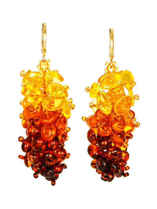 Серьги-гроздья из натурального балтийского янтаря и бисера Лукоморье