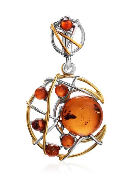 Ажурная подвеска, украшенная янтарём коньячного цвета Согдиана