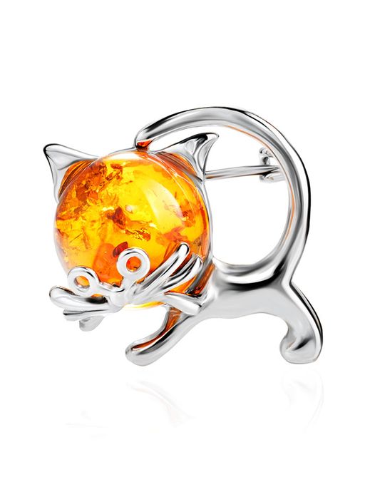Забавная брошь с коньячным янтарём Чешир