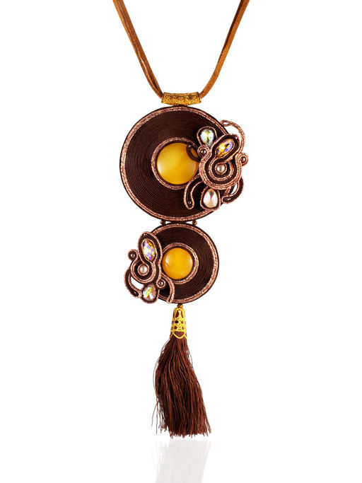 Крупная плетёная подвеска с кисточкой, украшенная медовым янтарём Индия на шнурке