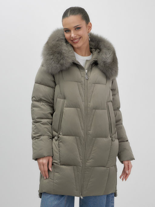 Пальто зимнее утепленное с мехом и капюшоном тренд коричневого цвета 7630K