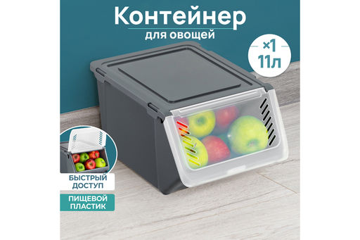 Контейнер для овощей 11 л 25,5*35*19 см серый (461118)