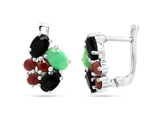Серьги из серебра изумруд берилл, рубин корунд, сапфир корунд, Индира