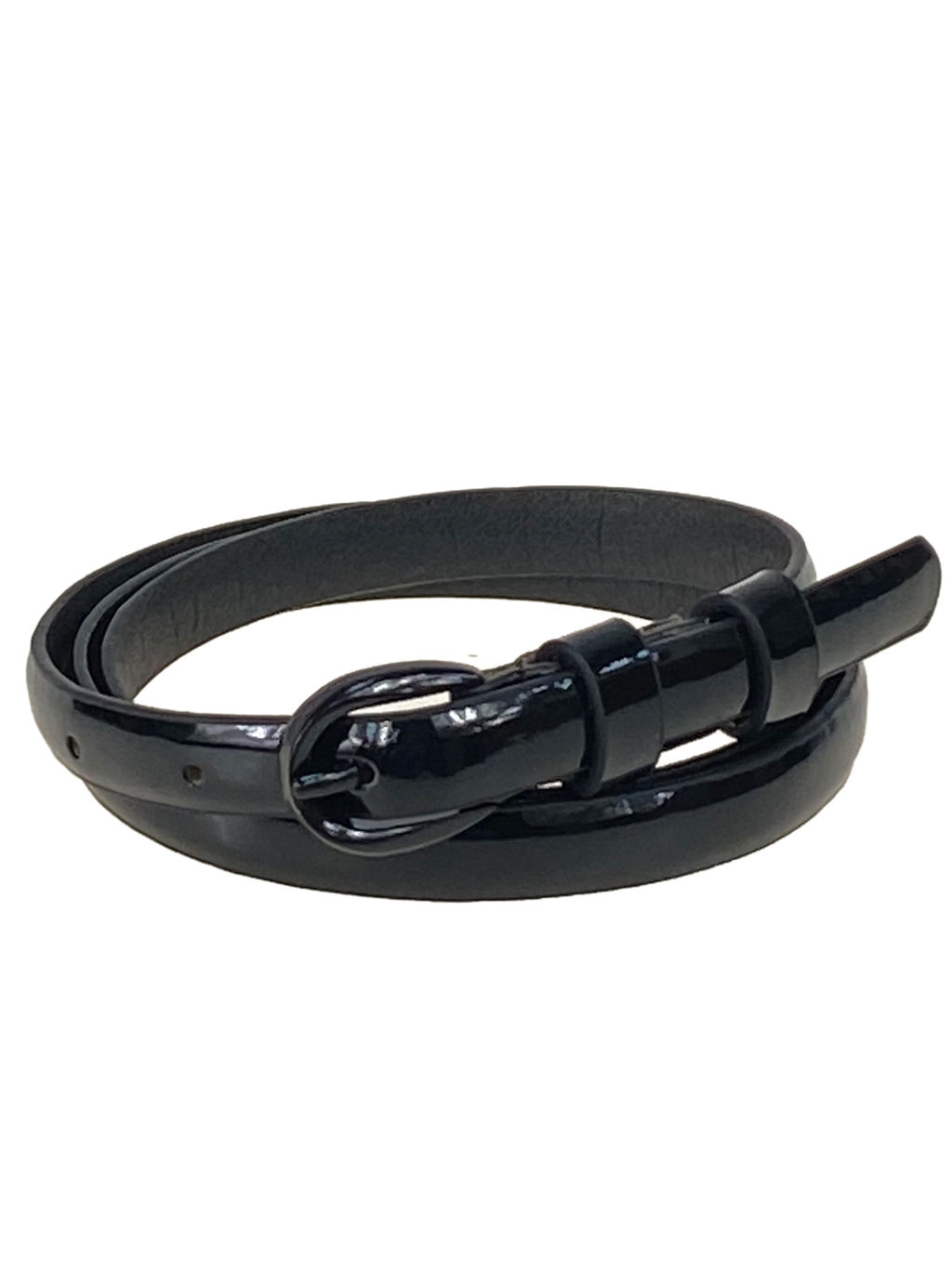 Тонкий лакированный ремень из искусственной кожи, цвет черный