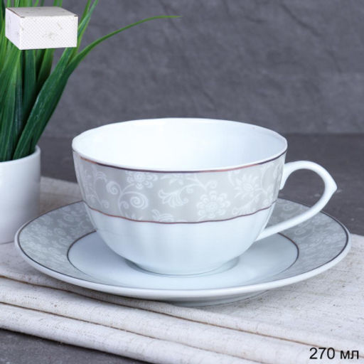 Чайный набор 2 предмета 270 мл / AY-1801 / Тонкостенный фарфор в подарочной коробке
