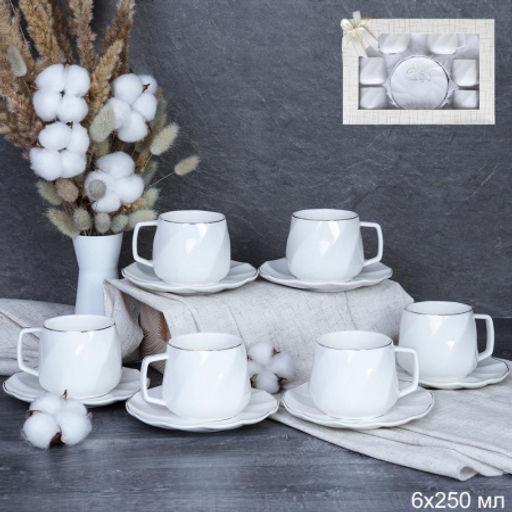 Чайный набор 12 предметов 220 мл витая форма А / CH03-12G 220 /уп 8/ костяной фарфор