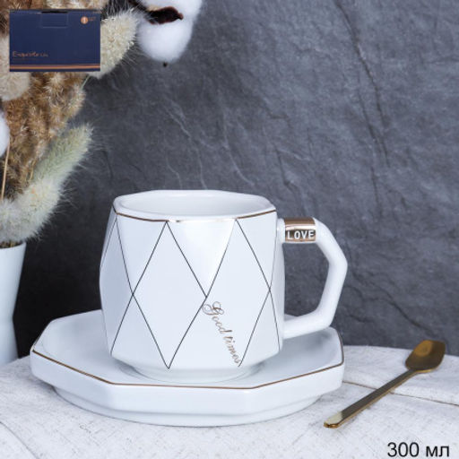 Чайный набор 2 предмета 300 мл с ложкой / 61-04 wite /уп 48/белый