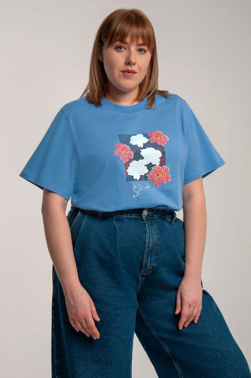 Арт. 31138 Футболка женская оверсайз 50-58 (5 шт) Цвет:Голубой
