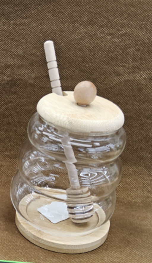 Банка для меда с ложкой на подставке бамбуковая крышка 450 мл / 7278 /уп 100/