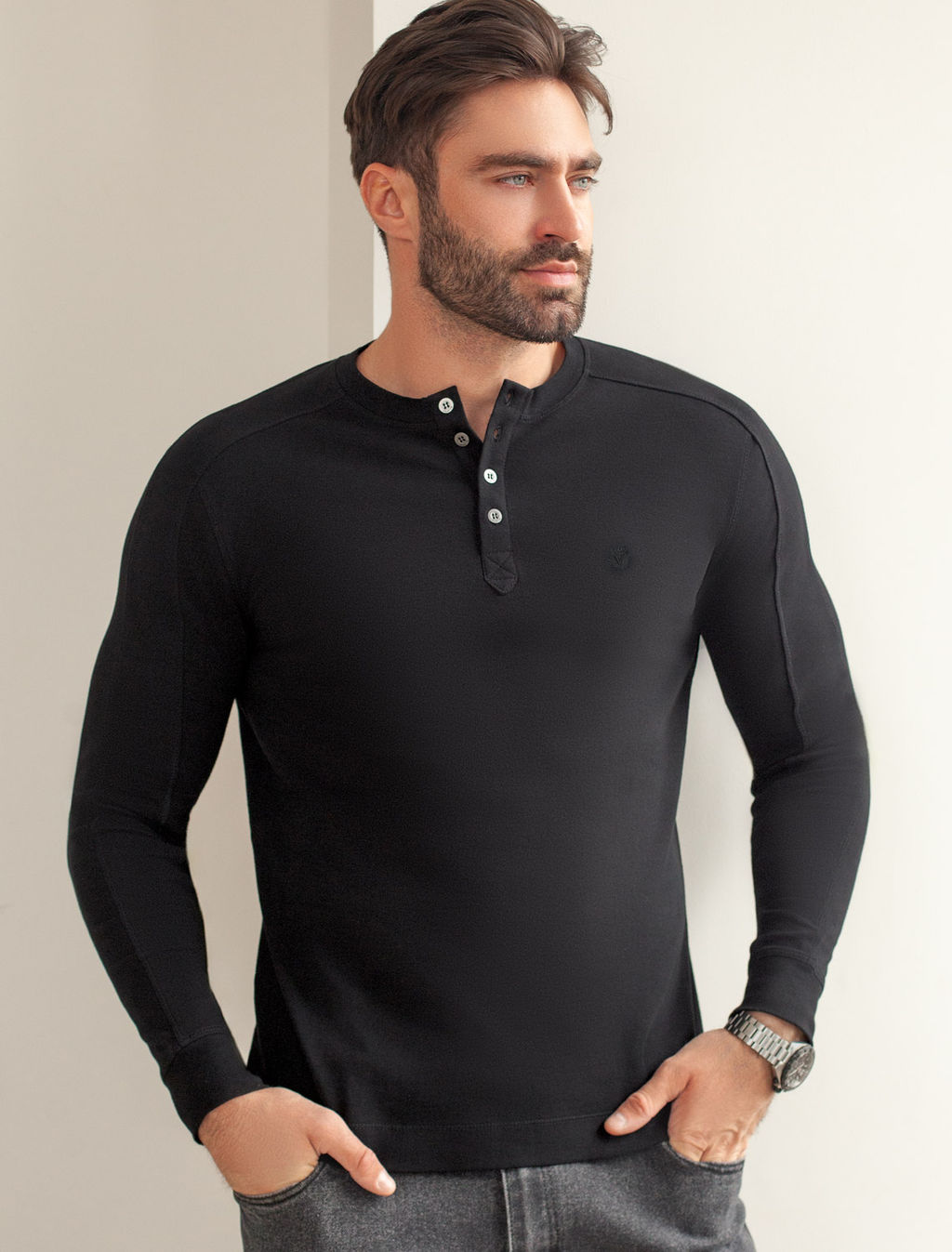 Лонгслив с воротником на пуговицах и декоративными швами из премиального хлопка с эластаном