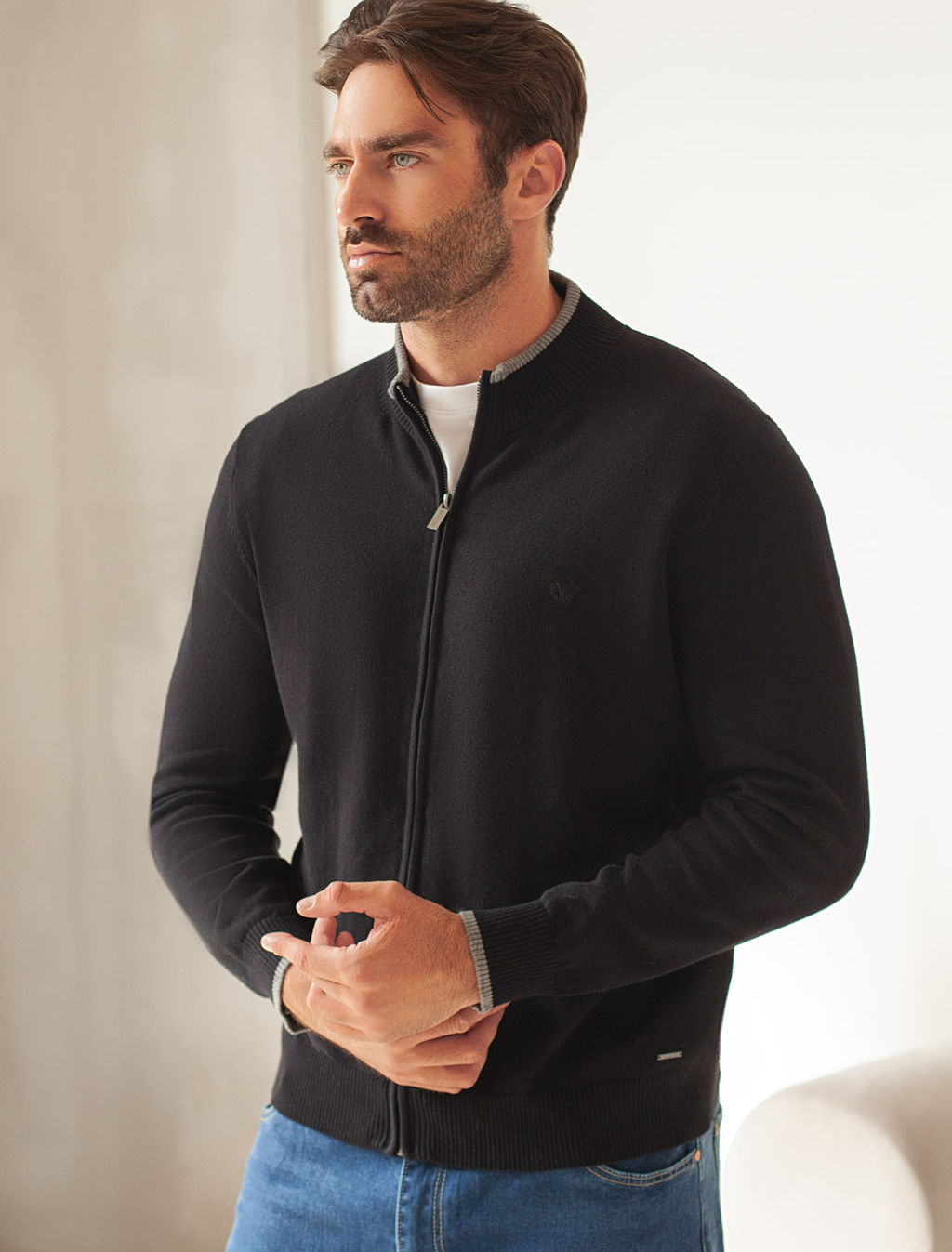 Кардиган на молнии из хлопка с нейлоном