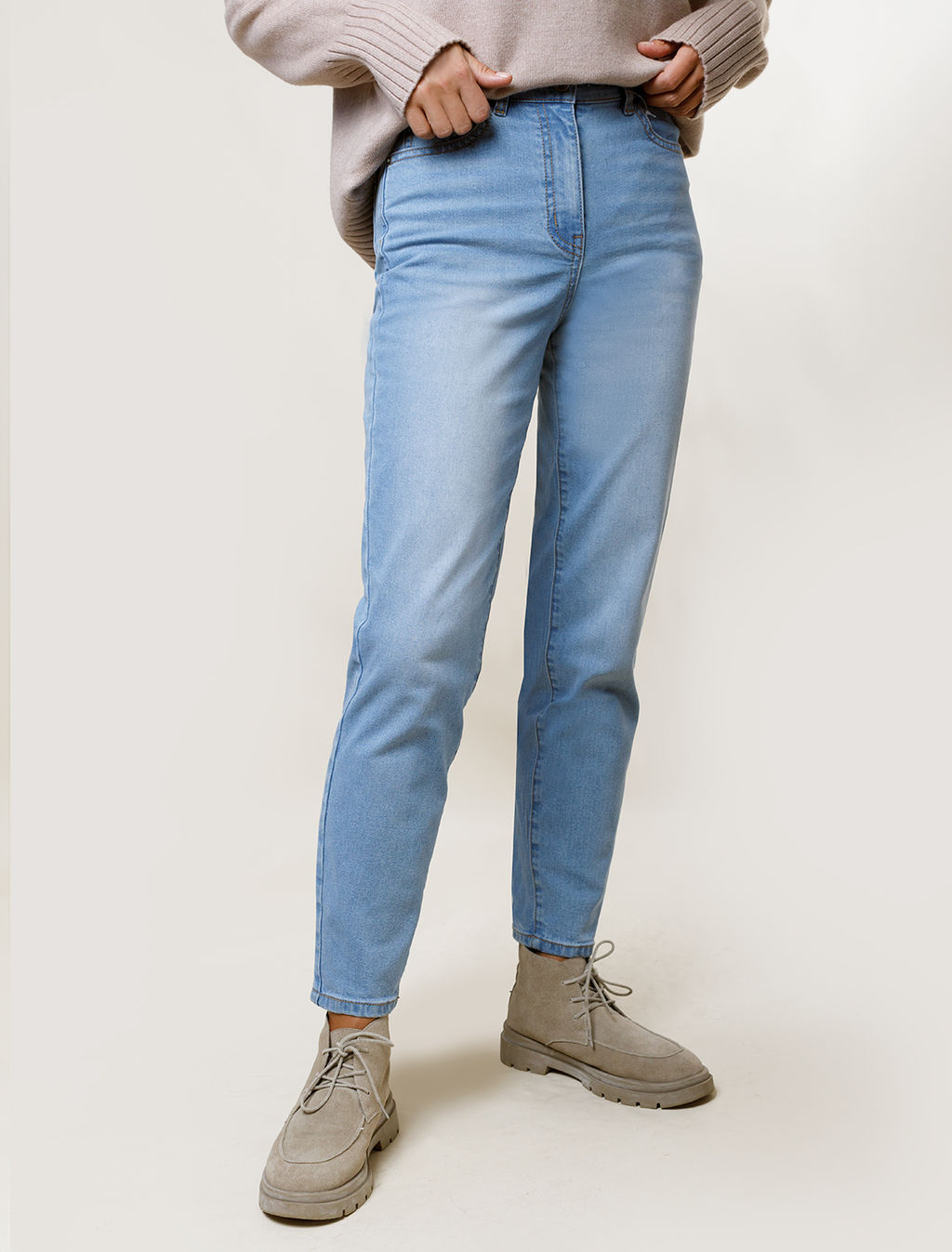 Джинсы мом фит из мягкой эластичной джинсы 12OZ