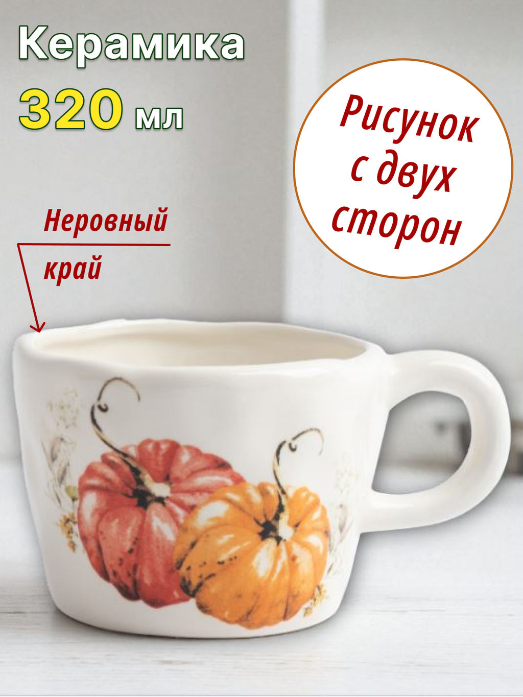 Кружка, 320 мл, керамика, молочная, Тыквы, Bright pumpkin
