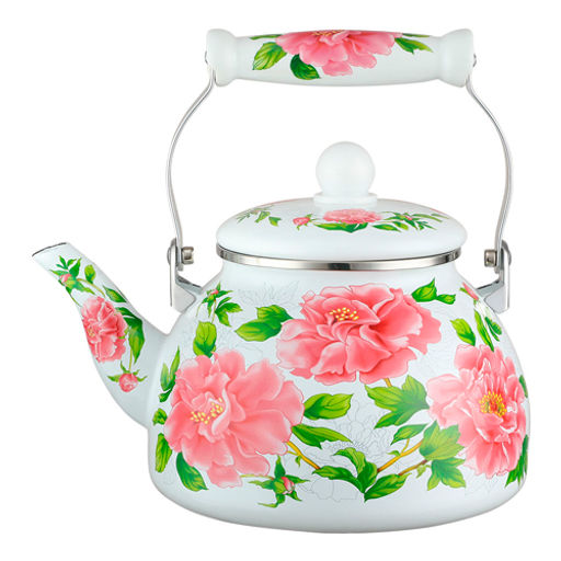 Чайник эмалированный с керамической ручкой 3,0л."Пионы" EM-1335 /DELTA/