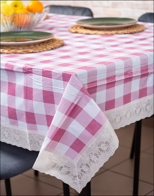 Скатерть, кружево силикон, 137х183см, клетка розовая