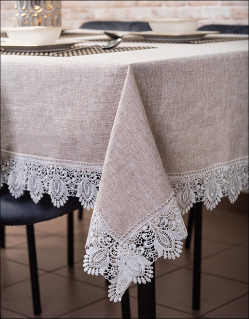 Скатерть с кружевом, 150х220см, цвет лен