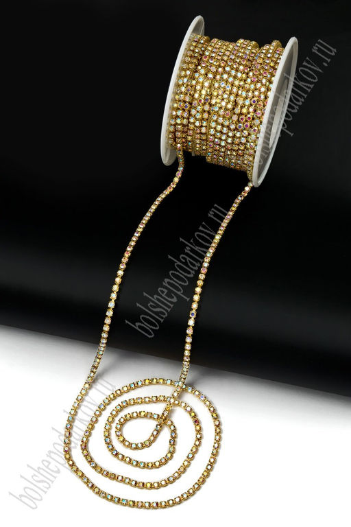 Стразы в бобине SS8М (2,4 мм*10 ярд) SF-2054, серебро хамелеон в золотой оправе