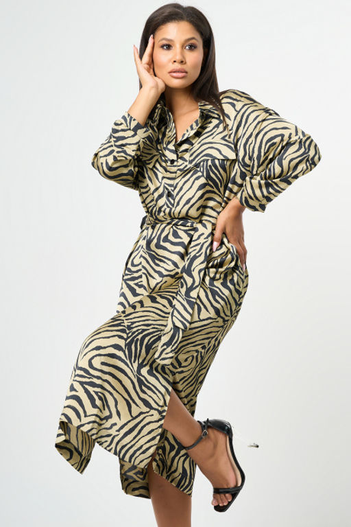 Платье-рубашка миди с поясом "леопард"