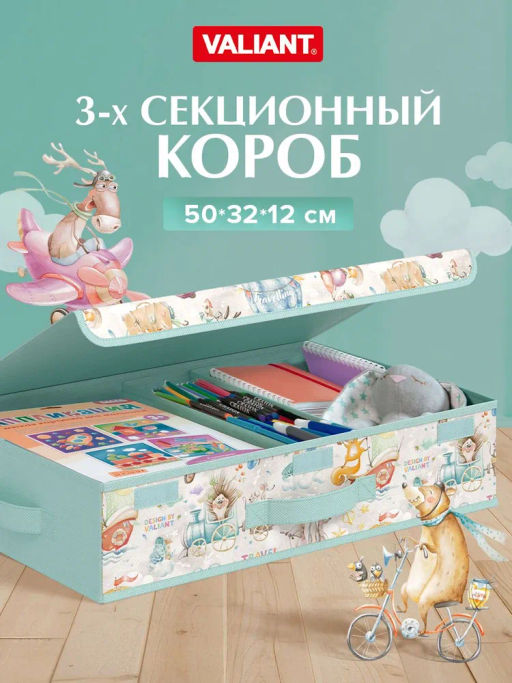 VAL KTR-BOX-LF Короб стеллажный с крышкой и 2-мя перегородками, плоский, 50*32*12 см, ПУТЕШАСТИКИ, шт