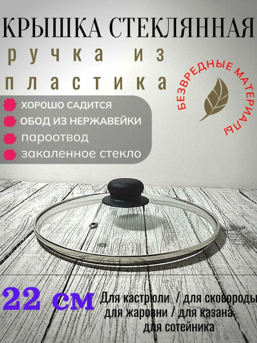 Крышка с ручкой стеклянная с металлическим ободком 22 см 4722