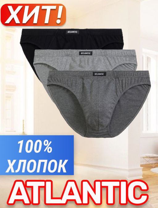 ATLANTIC 3BMP-322 Трусы спорт Basic - набор 3 шт. черный + серый меланж + темно-серый меланж