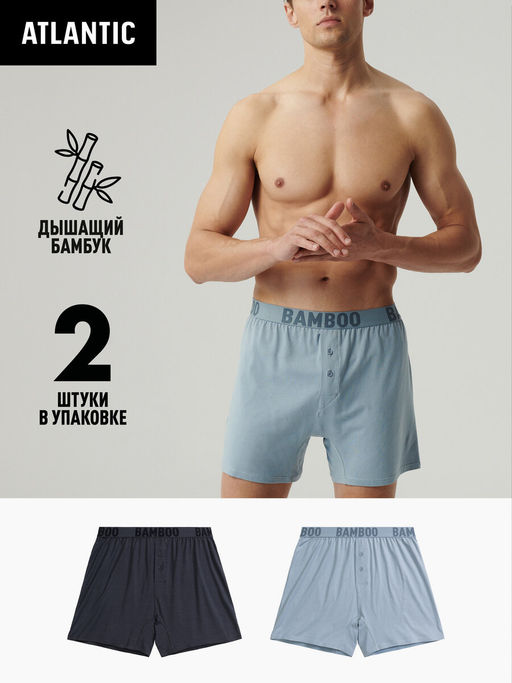 ATLANTIC 2MBX-076 Трусы боксеры Bamboo - набор 2 шт. голубой + графитовый
