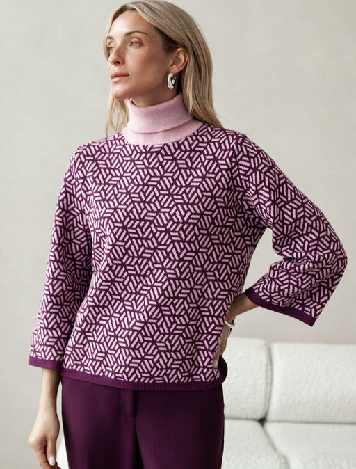 Свитер Vilatte D34.208 жаккардовой вязки с кашемиром пурпурный