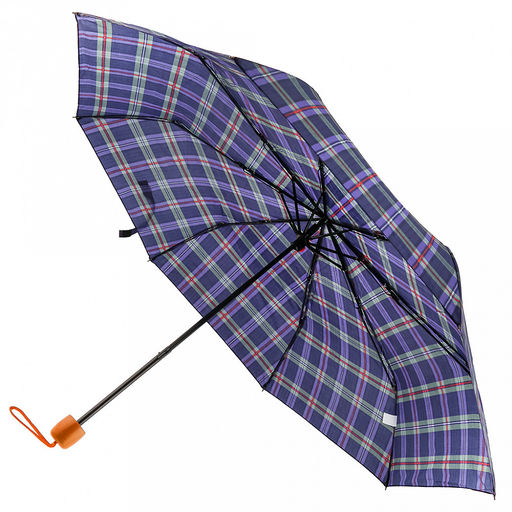 Зонт механический "Шотландка" плащевка, 8 лучей, д/купола 94см, 3 сложения, 24см в сложенном виде, пластмассовая ручка, фиолетово-зеленый, 210гр (Китай)