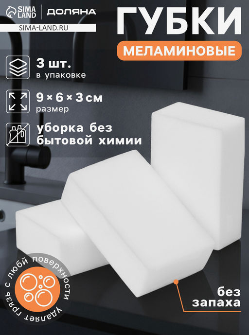 Губки меламиновые для удаления пятен Доляна, 3 шт., 963 см