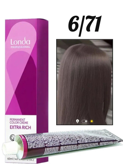 Стойкая краска 6/71 темный блонд коричнево-пепельный LondaColor