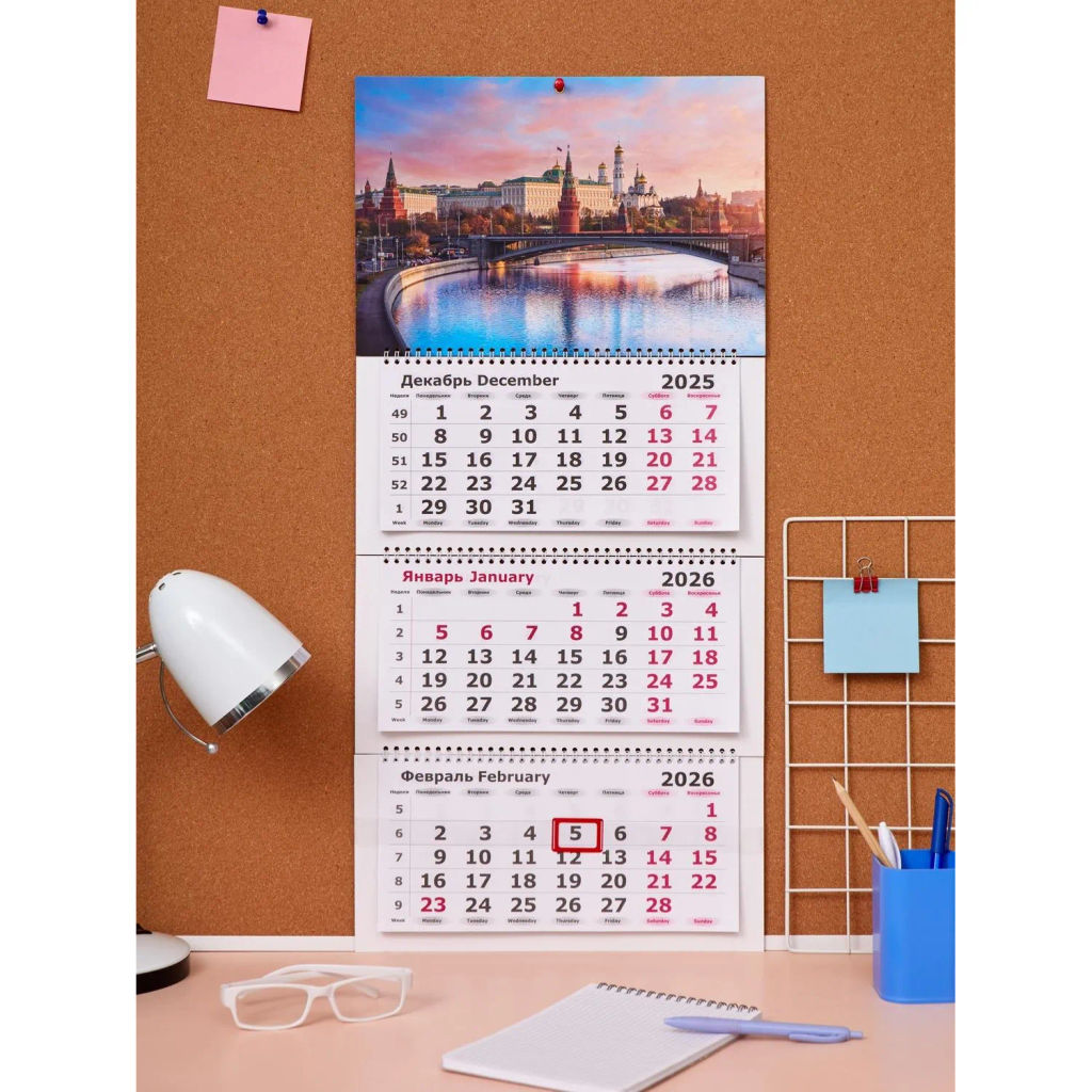 Календарь настенный 3-х блочный 2026 Attache Премиум, Москва, 330х705, 80г