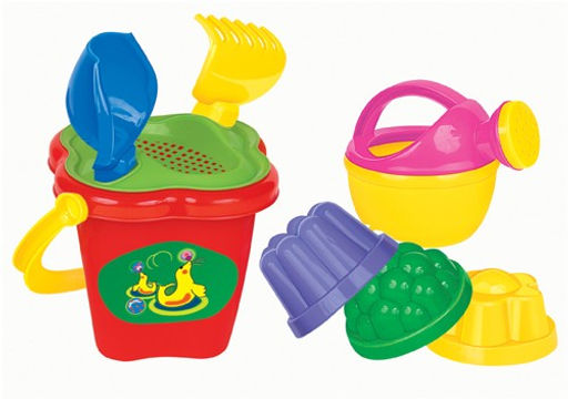 . Песочный набор №157 (ведро-цветок среднее,ситечко, лейка, совок №2,грабельки) арт.4481