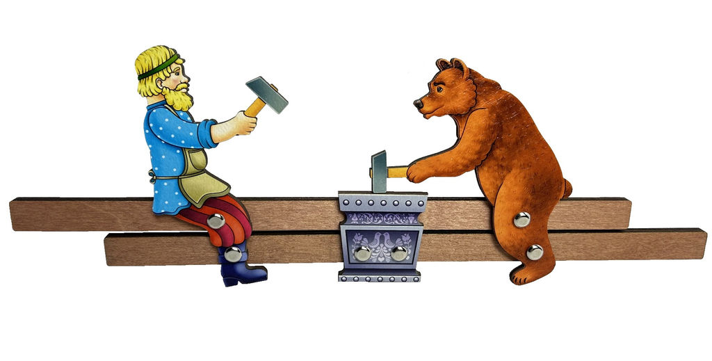 Богородская игрушка "Кузнецы: Мужик и медведь" окраш. арт.8764 /45 (РНИ)