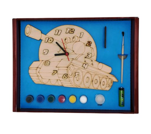 Часы с циферблатом под роспись "Танк" с красками арт.ДНИ127 /20