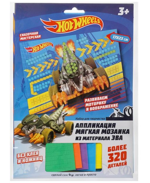 MultiArt. Аппликация мягкая мозаика "Hot Wheels" 17х23 см арт.100-AMP-HW2
