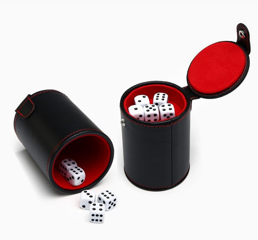 Кожаный стакан для игральных костей с отсеком для хранения (5 кубиков в комплекте) арт.kf-1002