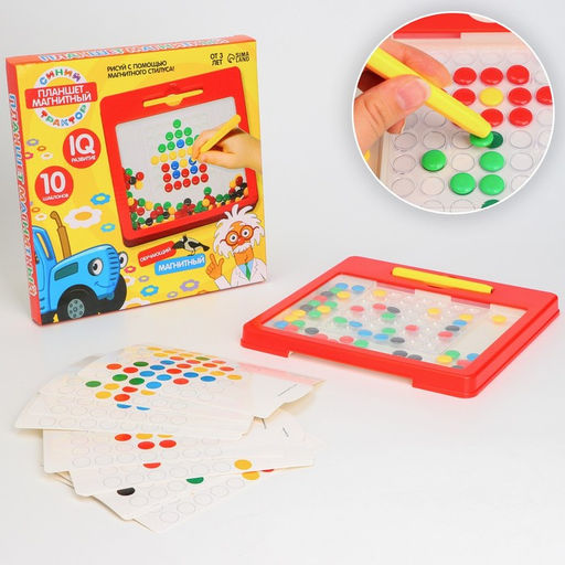 Синий трактор. Магнитный планшет-мозаика для рисования 49 ячеек, с карточками шаблонами арт.7024603